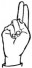 На ћирилици написано ВУКОСЛАВ ЛЕВИЧАНИН састоји се из 17 слова [?]. Исписано ћириличном једноручном азбуком за глувонеме: